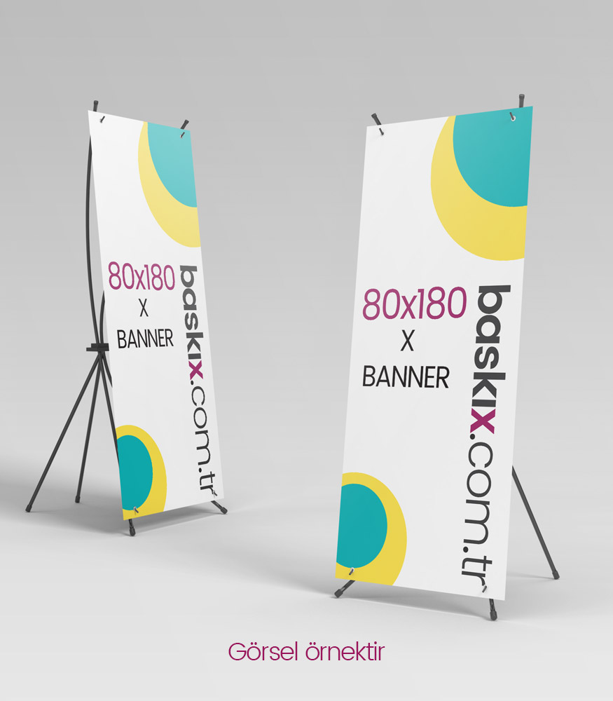 • – X Bannerların görsel alanı 80cm en x 180cm boy